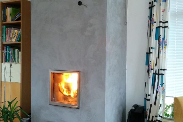 Enkele jaren later hebben we de schoorsteen in de woonkamer verwijderd en vervangen door een Finoven kachel en vloerverwarming aangelegd in de keuken en de badkamer. Een Finoven verbrandt hout onder zeer hoge temperaturen (relatief schone verbranding: norm EU: 150 mg fijnstof; Oostenrijk 50 mg; finoven hier: 24 mg ) en slaat alle warmte op in de kachelmantel (leem). Door de hoge temperaturen in de kern van de finoven worden vrijwel alle rookgassen verbrand en doordat de warmte in de kachel circuleert en niet door de schoorsteen verdwijnt heeft de kachel een hoog rendement (92 %) en een relatief schone verbranding. Als laatste hebben we de CV ketel vervangen door een lucht-water warmtepomp (8 kW) en het aantal zonnepanelen uitgebreid naar 42 stuks (ongeveer 10.000 kWh). De extra zonnepanelen zijn nodig om de toename van het stroomverbruik door de warmtepomp op te vangen. De warmtepomp wordt gebruikt in combinatie met de bestaande CV-radiatoren. Dankzij het gebruik van de Finoven in de woonkamer en de vloerverwarming in de keuken en de badkamer en de isolatie van de gehele woning levert het gebruik van een warmtepomp in combinatie met bestaande radiatoren een prima resultaat op.