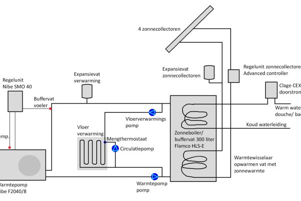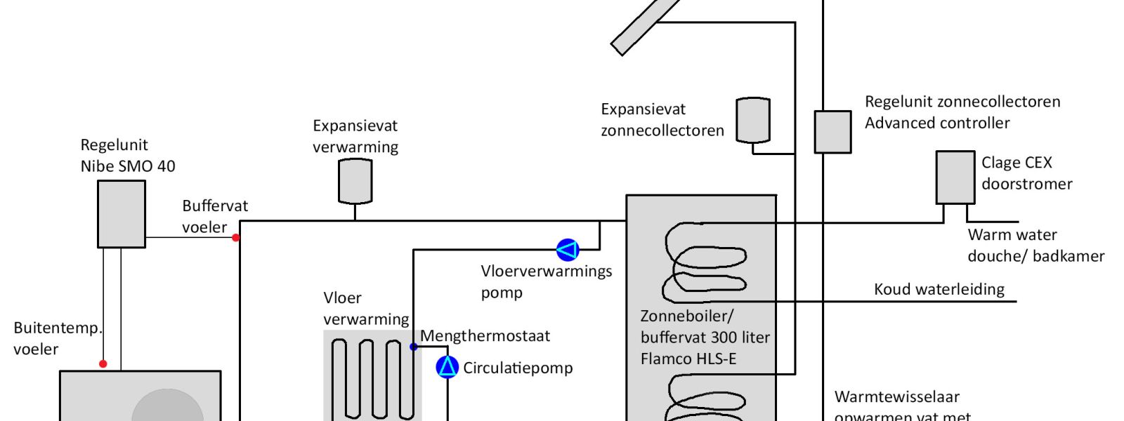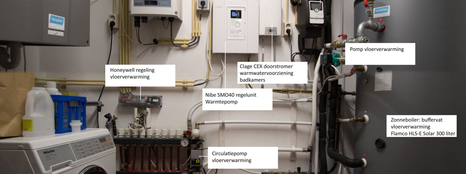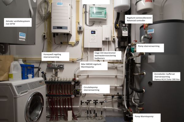 Zonnepanelen, zonneboiler voor tapwater en verwarming, warmtepomp, balansventilatie met wtw.