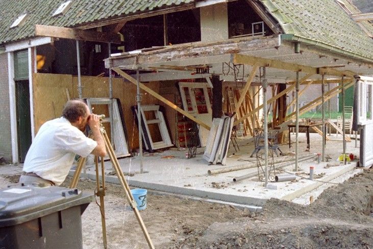 De eerste stappen De grote lijnen van de klus overzag ik wel, maar hoe pak je dat aan? Ik bezit weliswaar twee rechter handen, maar had nog onvoldoende kennis van bouwtechnieken, bouwmaterialen en de aanleg van installaties (uitgezonderd de E-installaties). Ik kocht studieboeken bij de Slegte, voerde gesprekken met een bouwmaterialen leverancier en ging te rade bij een collega van de afdeling DEGO (Duurzame Energie in de Gebouwde Omgeving). Ik verdiepte mij opnieuw in de sterkteleer, warmtetransmissie en het maken van drukverliesberekeningen in water en gasleidingen. Tegelijkertijd begon ik met het maken van indelingsschetsen, wat niet eenvoudig bleek. Een rijtjeswoning biedt beperkte indelingsvarianten, maar een ruime boerderij des te meer. Pas bij schets nummer tien zeiden we tegen elkaar: ‘ja!’ Die laatste schetsen heb ik op de computer uitgewerkt.