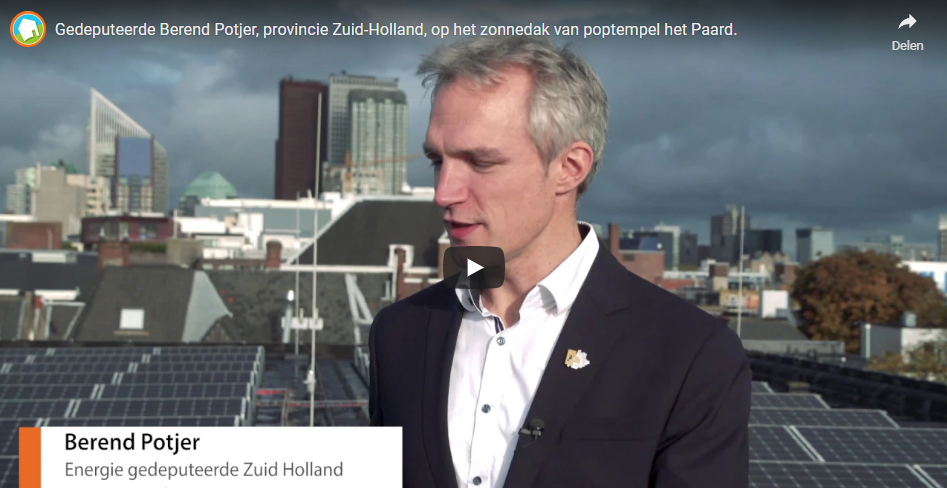 Video – Gedeputeerde Berend Potjer laat op het dak van poptempel het Paard zien wat er wordt gedaan aan energieopwekking. Provincie Zuid-Holland wil schone, duurzame energie haalbaar en betaalbaar maken voor iedereen.
