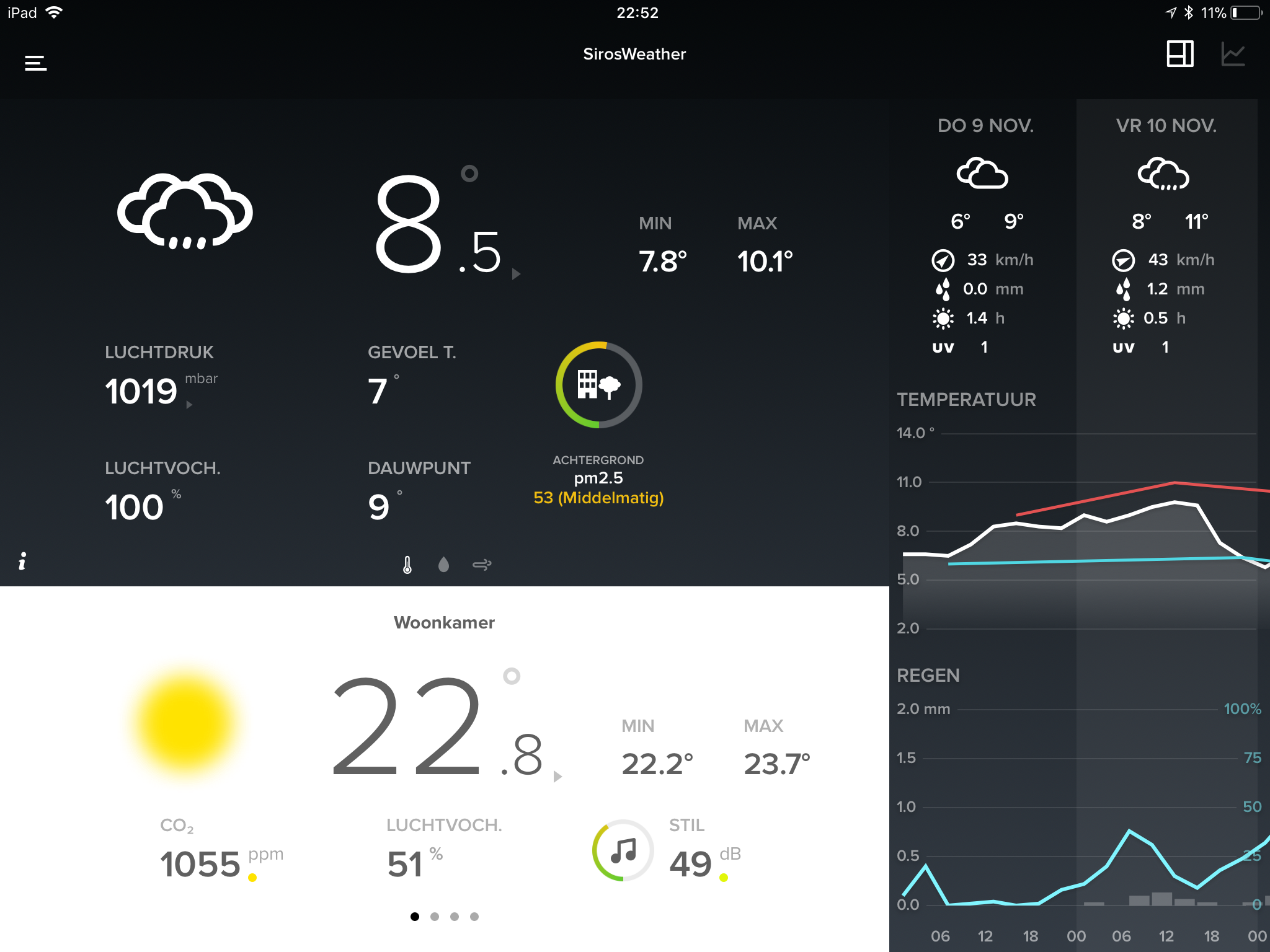 Via CO2 metingen in verschillende vertrekken via een Netatmo weerstation gekoppeld aan het Fibaro domotica systeem wordt de balansventilatie aangestuurd. Standaard staat deze op stand 1 en indien nodig obv CO2 meting wordt de stand verhoogd naar 2 of 3 (bij veel visite).