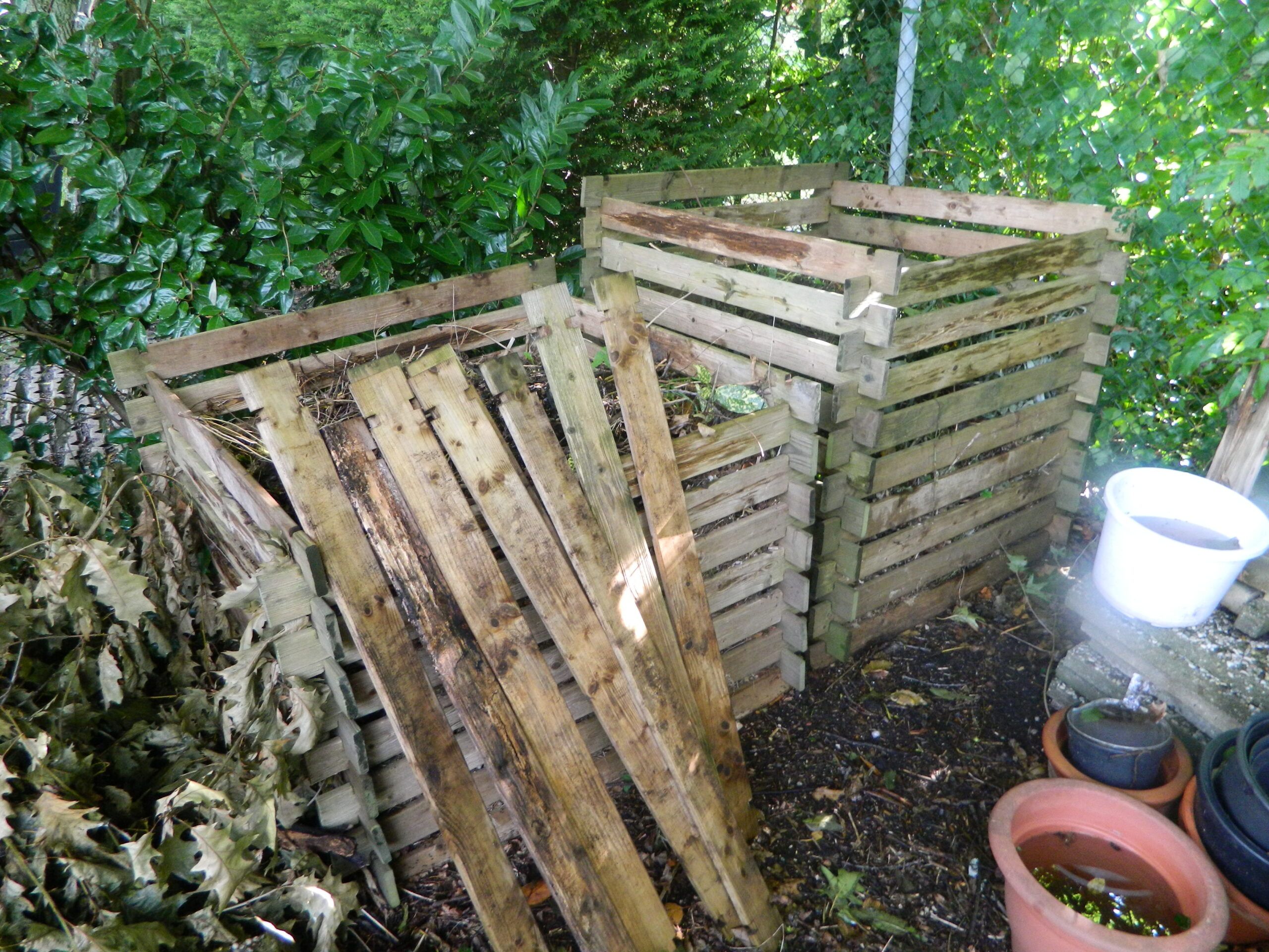 Ik heb twee compostbakken van Hillhout naast elkaar staan, opgebouwd uit blokhutplanken. Eén bak ben ik aan het vullen met nieuw groenafval. Uit de andere bak schep ik steeds wat half verteerd materiaal over het nieuwe materiaal. De ene bak wordt dus voller en de andere steeds leger. Op een gegeven moment stuit ik op het volledig verteerde materiaal en dat strooi ik uit over de tuin. Dan ga ik de lege bak vullen met nieuw materiaal en zo vise versa.