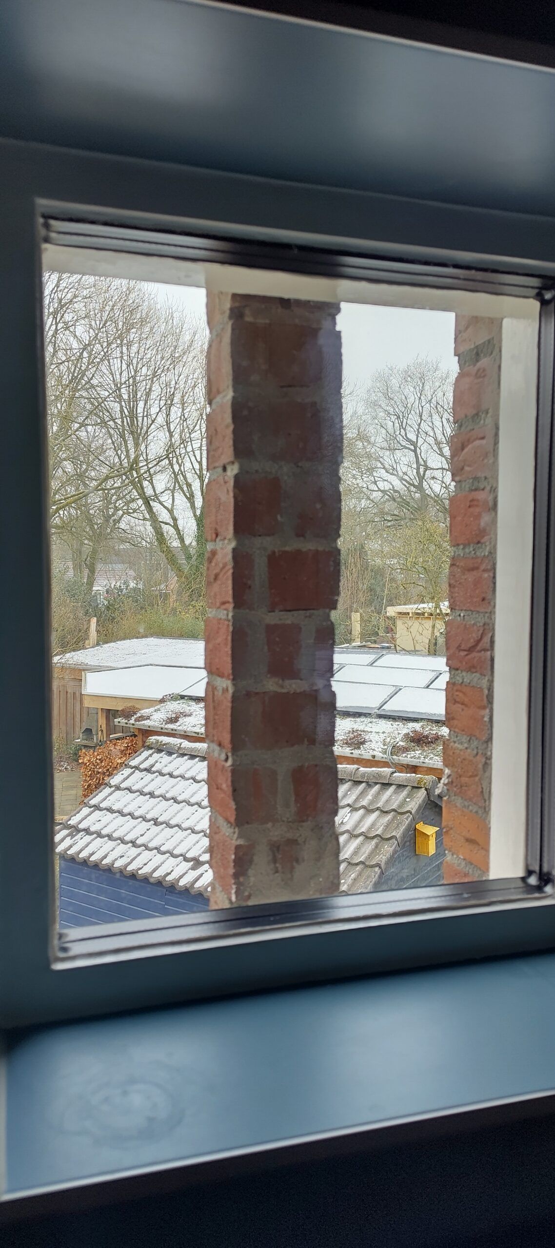 Mooi om bij de nieuwe kozijnen eens te kijken hoe goed de isolatie aansluit en of je nog wat steen weg kan krijgen dat een koudebrug vormt. De twee kleine inzetramen in de badkamer en wc heb ik zelf vervangen door tripple glas van dezelfde dikte. Van binnen glaslatten, randisolatie en goed kitten en het resultaat zijn twee goed geïsoleerde ramen. Open kunnen zale alleen niet maar dat hoeft ook niet met goede afzuiging.
