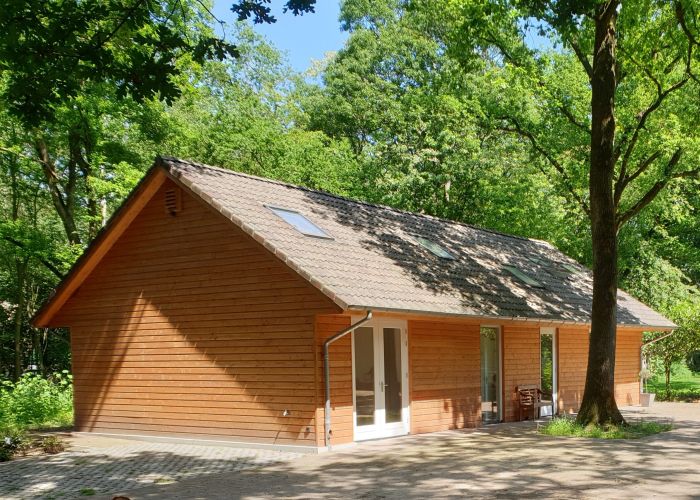 Fermacellplaten tegen douglashout, afgewerkt met leemverf.