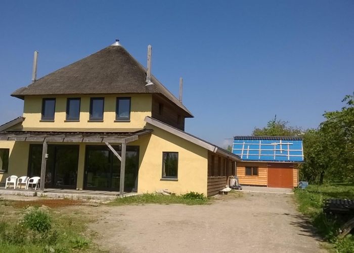 Op zuidzijde na het stro Steico Protect 6 cm met afwerking van Strycoliet. Totale Rd > 8