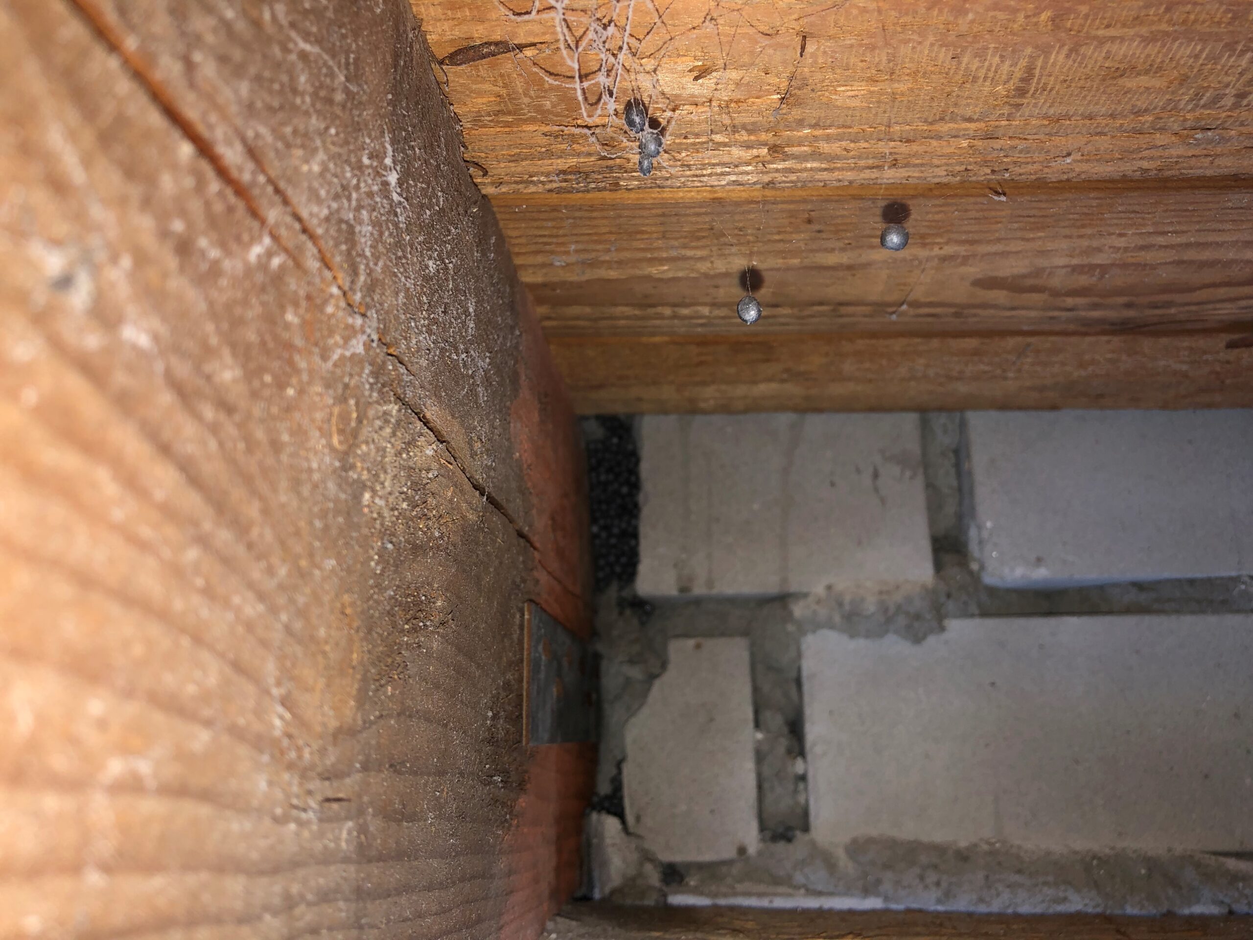 Een oud huis zit vol met naden en kieren. Langs de houten balken konden we vanaf binnen de spouw inkijken. Tegelijk met de verbouwing van de woonkamer hebben we de balkkoppen goed afgedicht.
