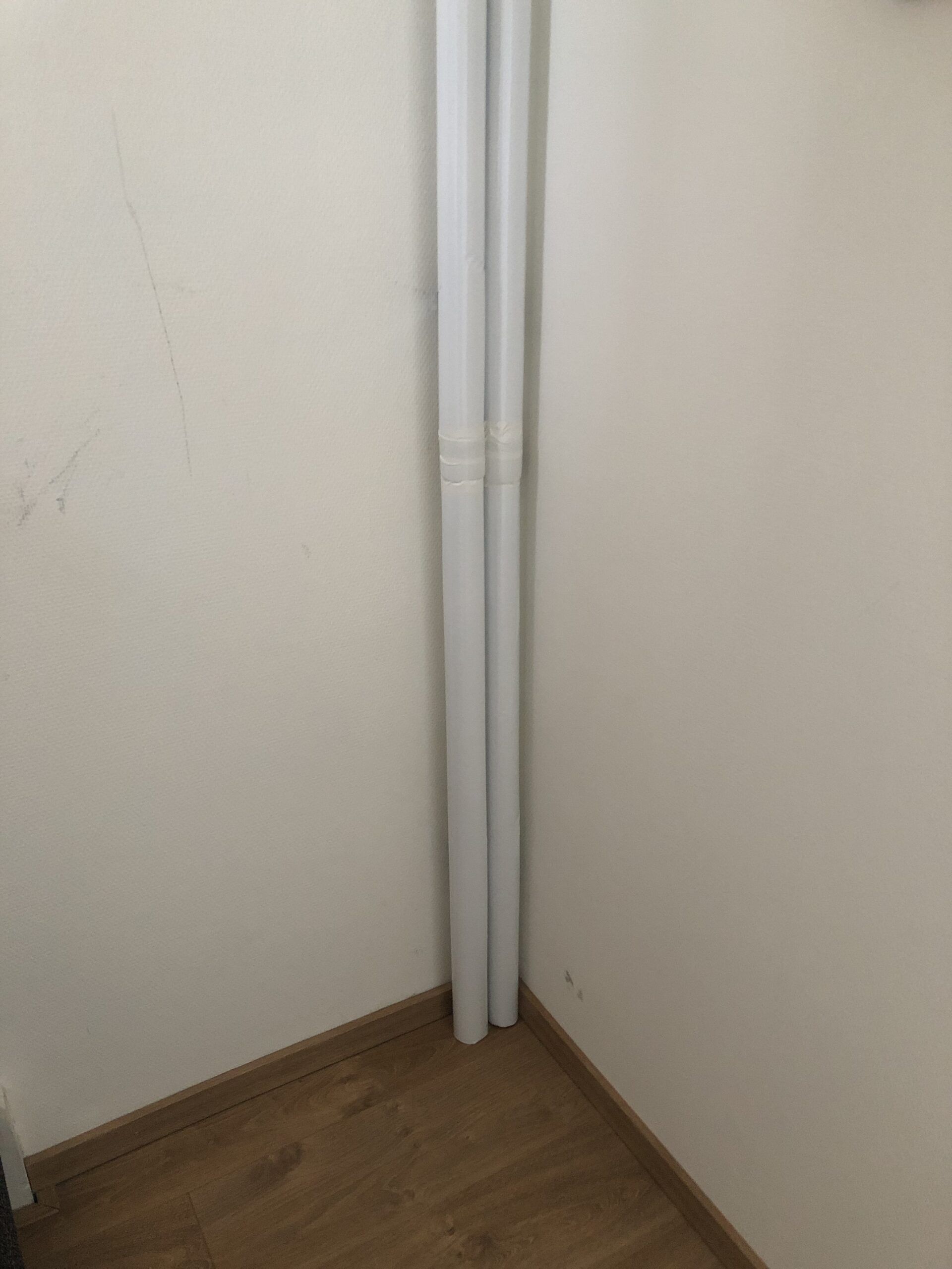 Op plaatsen waar de leidingen wel in het zicht zijn, bijvoorbeeld op de overloop hebben we witte leidingisolatie toegepast, omdat we dat mooier vinden.