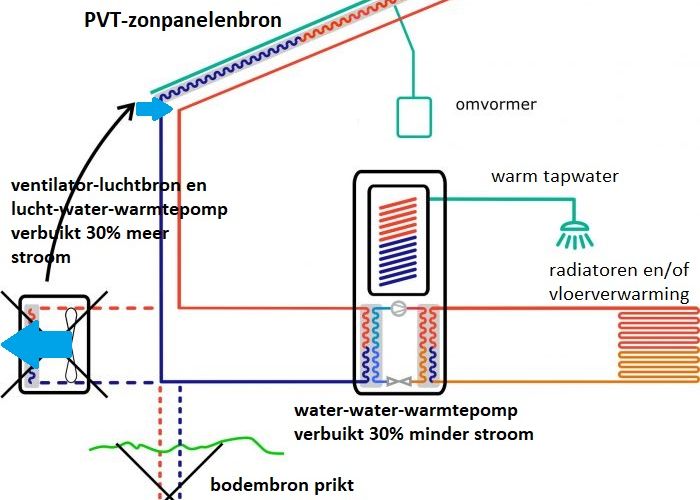 (Bron: Ekas Duurzame Oplossingen RobertEkas@outlook.com en Technische Unie, 2021-01-08 en PVT-zonpanelenbron met warmtepomp in gasloze woning 1924).