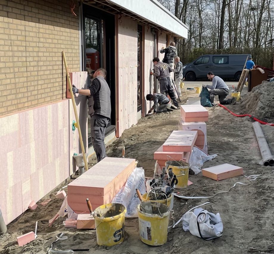 Boven de grond is Resol isolatie aangebracht en onder de grond EPS langs de fundatie.