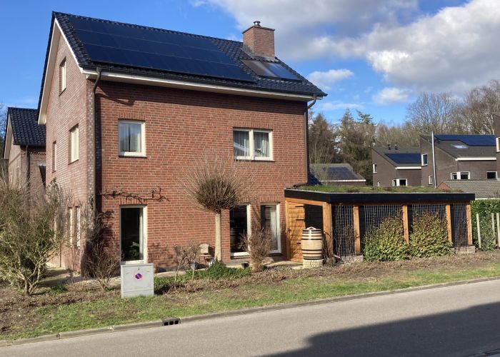 Niet op woning, maar wel op veranda, zelf aangelegd (incl. regenton voor tuin). Principe is ook toepasbaar voor een woning.