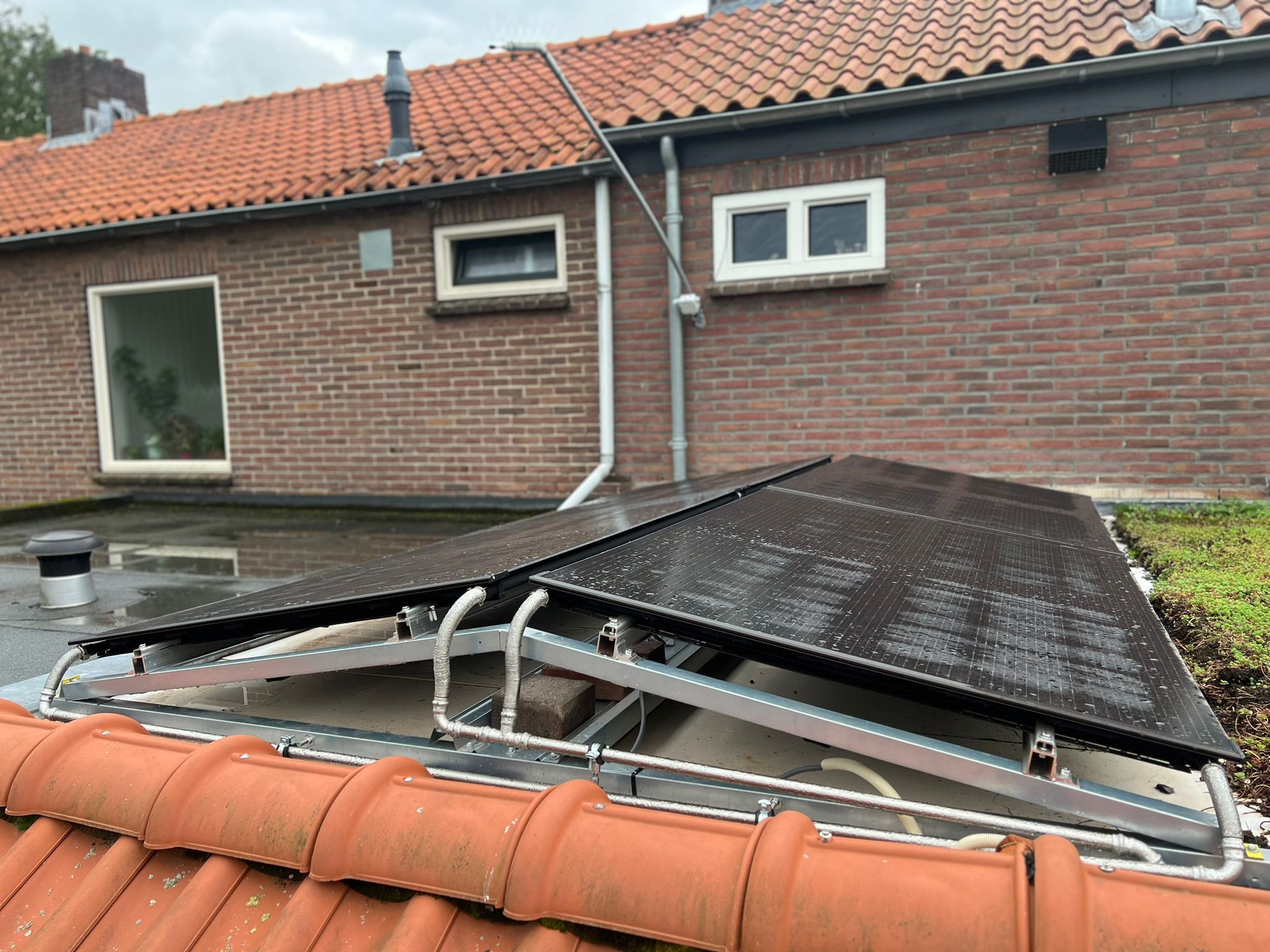 All electric dmv 4 stuks Triple Solar 410WP PVT panelen op plat dak en 3,5kW Triple Solar warmtepomp in berging alsmede Triple Solar 150 thermische batterij voor warm water. Het slim regelen van dat ding is nog een puzzel in combinatie met mijn Honeywell Evohome multi-zone regelsysteem