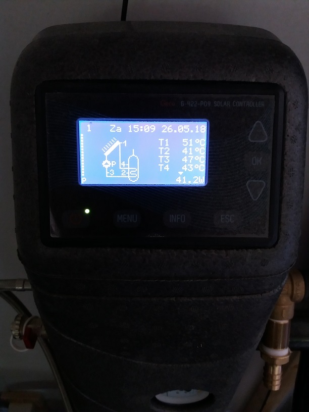 De combinatie van 3 collectoren (met een opbrengst van 10,2 GigaJoule per jaar) met een 300l-voorraadvat geeft snel warm water op zomerse dagen. Ook op dagen wanneer de zon veel minder schijnt, levert het systeem toch al vrij snel een voldoende opgewarmd vat om te kunnen douchen. Toch is het systeem slechts 1 keer oververhit geweest tijdens de afgelopen hete zomer. De besturing is blijkbaar dusdanig intelligent dat dit niet snel gebeurt.