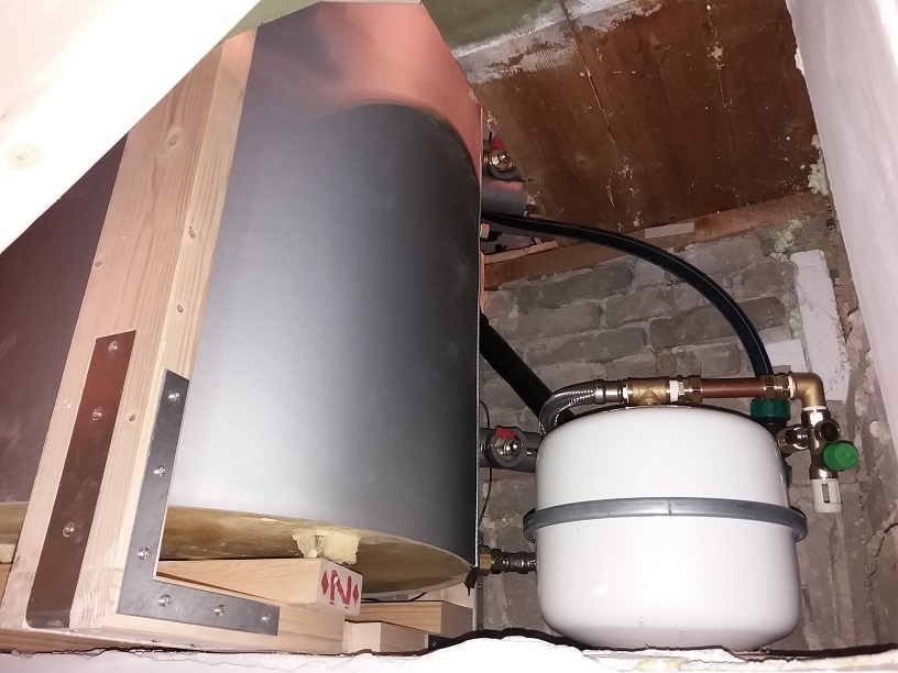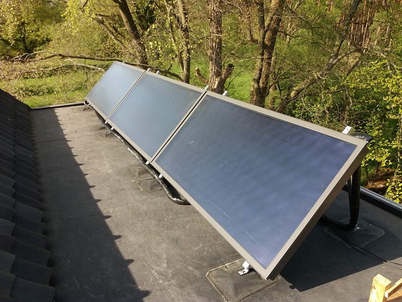 In mei 2018 hebben we een zonneboiler geïnstalleerd met 3 vlakkeplaat-collectoren op het platte dak van de dakkapel aan de achterzijde van het huis. We hebben gekozen voor dit soort collectoren, omdat deze in landscape-opstelling op het dak geplaatst kunnen worden. Op deze manier steken ze amper boven de nok uit en zijn ze vanaf de voorzijde van het huis niet te zien. Ik had liever heatpipes (vacuumbuizen) gehad omdat deze met name in de koudere maanden efficiënter zouden zijn, maar door de lengte van de buizen zou het geheel veel te zichtbaar worden op het dak en dat vonden we esthetisch gezien een te groot probleem. Ik heb heatpipes in een korte uitvoering in Nederland niet kunnen vinden.