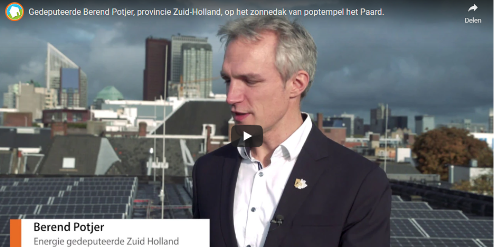 Video – Gedeputeerde Berend Potjer laat op het dak van poptempel het Paard zien wat er wordt gedaan aan energieopwekking. Provincie Zuid-Holland wil schone, duurzame energie haalbaar en betaalbaar maken voor iedereen.