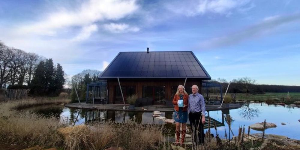 In 2014 zijn het nieuwbouwhuis en de bijgebouwen opgeleverd. Dit huis is gebouwd volgens het bouwconcept van Ing. Theo Smidt. Door de jaren heen verzamelde hij kennis over het toepassen en monteren van zonnepanelen, o.a. via zijn voormalig bedrijf Esdec in Deventer. Maar ook leerde hij bij in de praktijk over energieneutraal en duurzaam bouwen. Zijn ideeën zijn vormgegeven in dit huis in Harfsen. Toen nog als experiment en nu – na jaren van monitoren – blijkt dat zijn bouwconcept werkt. In 2020 kwam ook de ecologische zwemvijver gereed, wat reuze handig is in de zomer voor een lekkere duik.