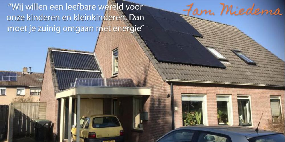 Gerrit Miedema is 64 jaar en elektrotechnisch werkvoorbereider van beroep. Alles wat ze aanschaffen, wordt door Gerrit zelf geïnstalleerd. “Ik vind het leuk om mij met de technische aspecten in huis bezig te houden. Dat maakt het verduurzamen van je woning ook een stuk gemakkelijker,” erkent Gerrit. Zijn vrouw, Hillie, is 62 jaar en werkte vroeger in de zorg. Hillie legt uit waar de behoefte van het verduurzamen vandaan komt: “Wij willen een leefbare wereld voor onze kinderen en kleinkinderen. Dan moet je zuinig omgaan met energie en proberen je steentje bij te dragen om het milieu te verbeteren.”