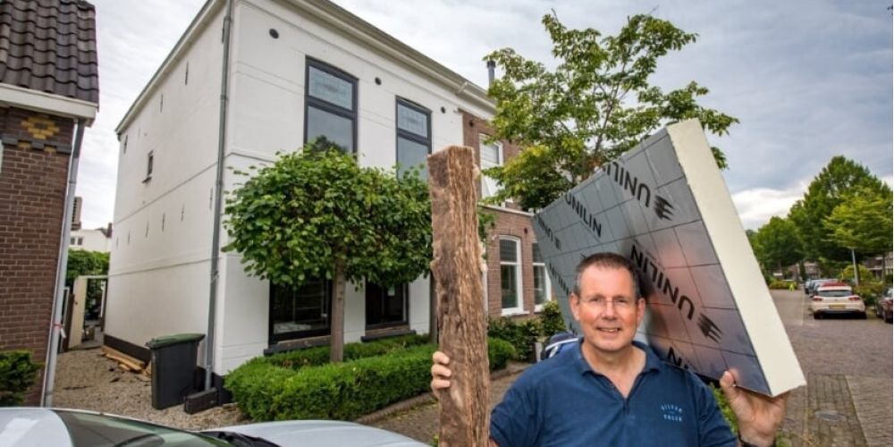 Arjen begon met vier zonnepanelen op het dak van zijn schuur. Inmiddels heeft hij er op het dak van zijn woning achttien panelen erbij genomen. De volgende stap was het verwarmen van de woning. Hiervoor hebben ze de binnen- en buitenschil helemaal geïsoleerd. Zo hebben ze de kunststof kozijnen vervangen door HR++ glas en daarmee de koudebruggen weggehaald. “Je past tijdens de verbouwing meteen de nieuwste vorm van isoleren toe”, legt Arjen uit. “Bij het herbouwen let je bijvoorbeeld extra op tochtgaten.”