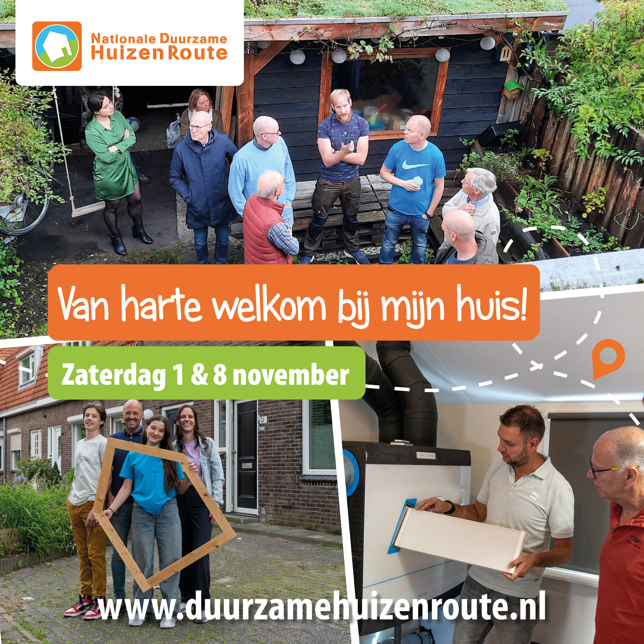 Doe jij zelf mee aan de Duurzame Huizen Route of vind je het leuk om het evenement in jouw omgeving onder de aandacht te brengen? Dat kan op allerlei manieren! Plaats bijvoorbeeld een berichtje in je buurtapp, hang een poster op in de supermarkt of op een andere plek waar veel mensen komen. Zo weten meer mensen de open huizen te vinden!