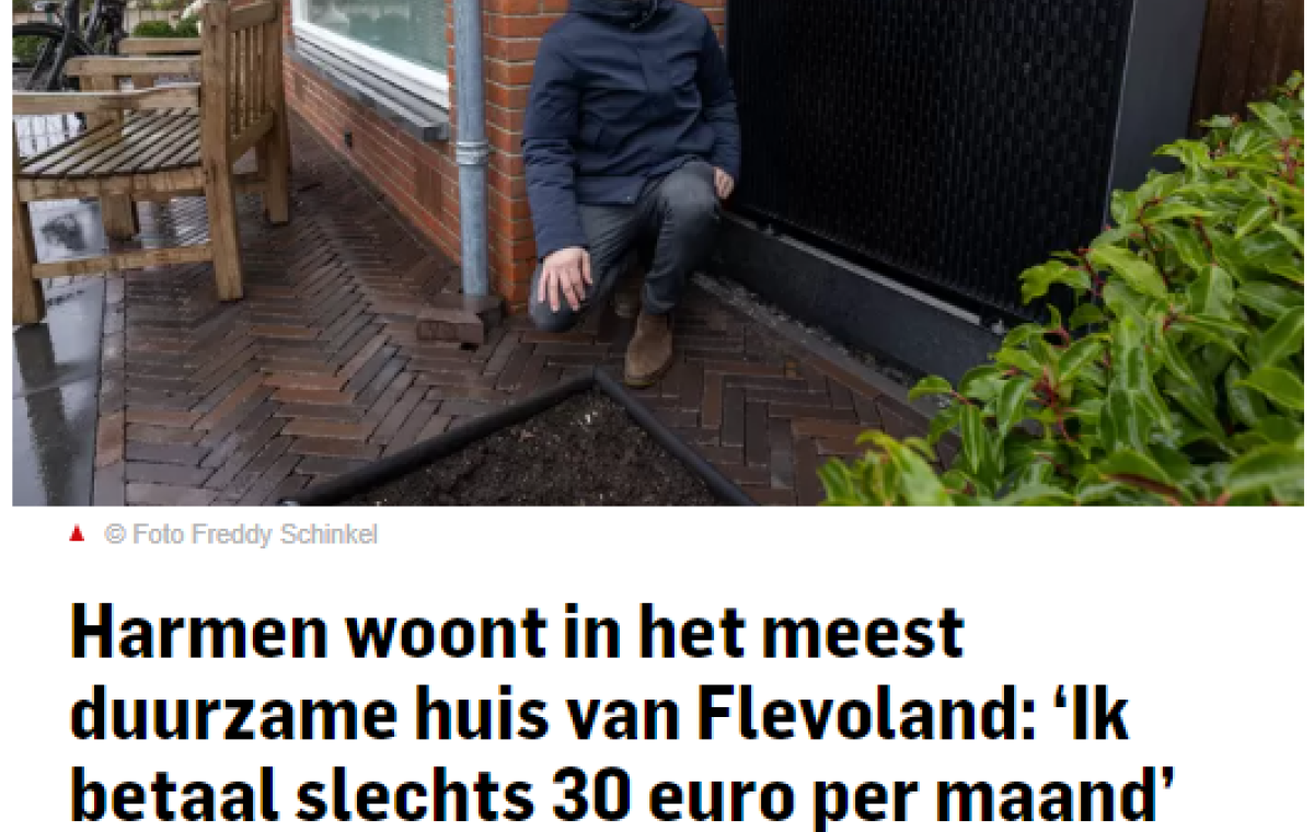 ,,Mijn oude cv-ketel heb ik mooi aan mijn moeder cadeau gegeven”, vertelt Harmen van Laar (31) trots terwijl hij zijn moderne warmtepomp toont. Het smaakt naar meer. Zijn uiterst duurzame woning is benoemd tot meest duurzame woning van Flevoland. ,,Mensen mogen mij altijd bellen met vragen.” Lees het hele artikel van De Stentor hier.