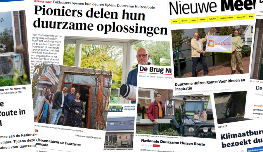 30 oktober 2024 Marten Lijklema uit Ruinerwold gooit deuren open tijdens Duurzame Huizen Route: ‘Mijn voorschot is nog maar 15 euro per maand’ 22 oktober 2024 – Meppeler Courant Huiseigenaren uit heel Nederland nodigen op zaterdag 2 en 9 november anderen uit om een kijkje te nemen in hun woning… Bekijken