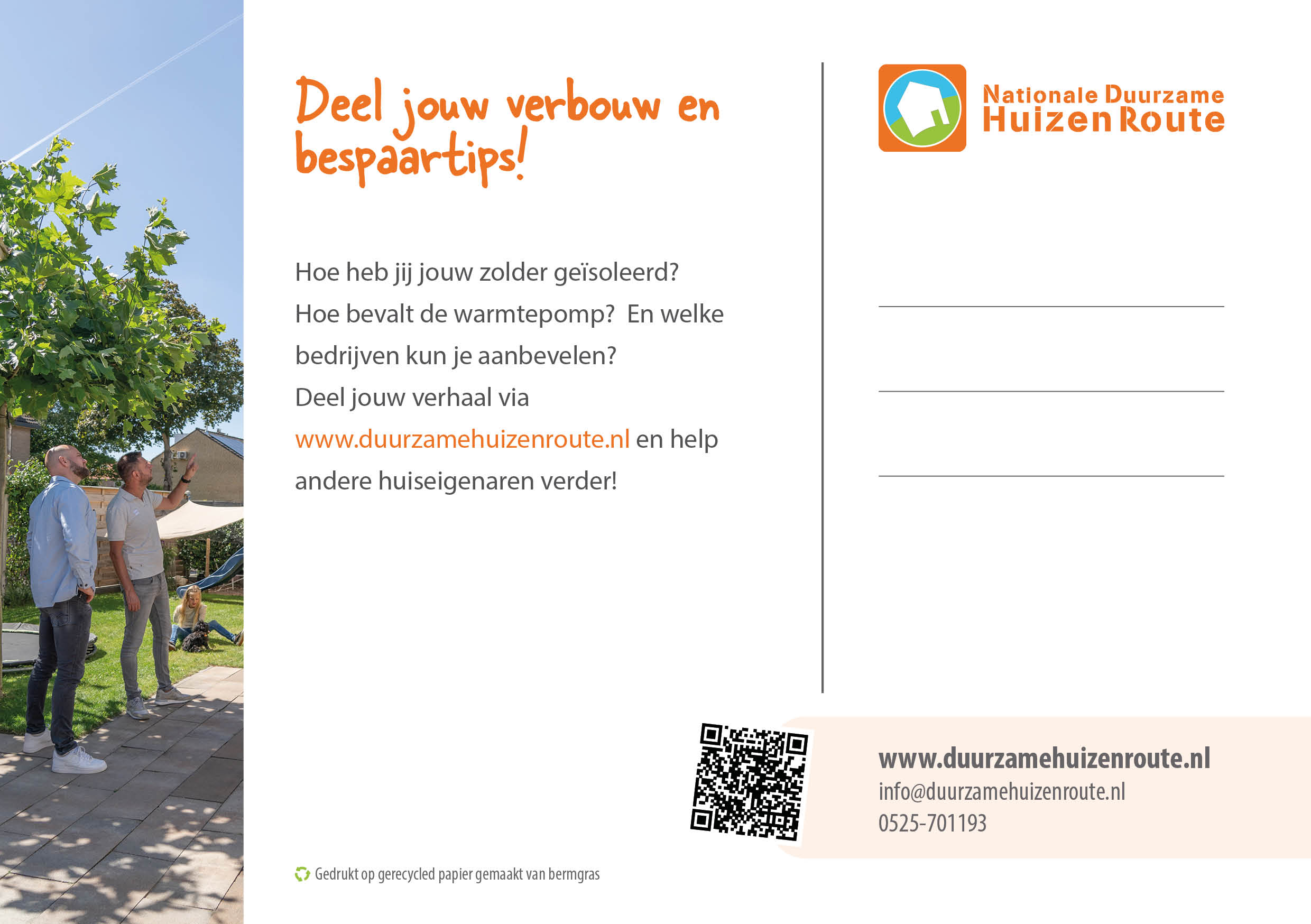 De flyers en ansichtkaarten zijn gedrukt op papier gemaakt van Nederlands bermgras.