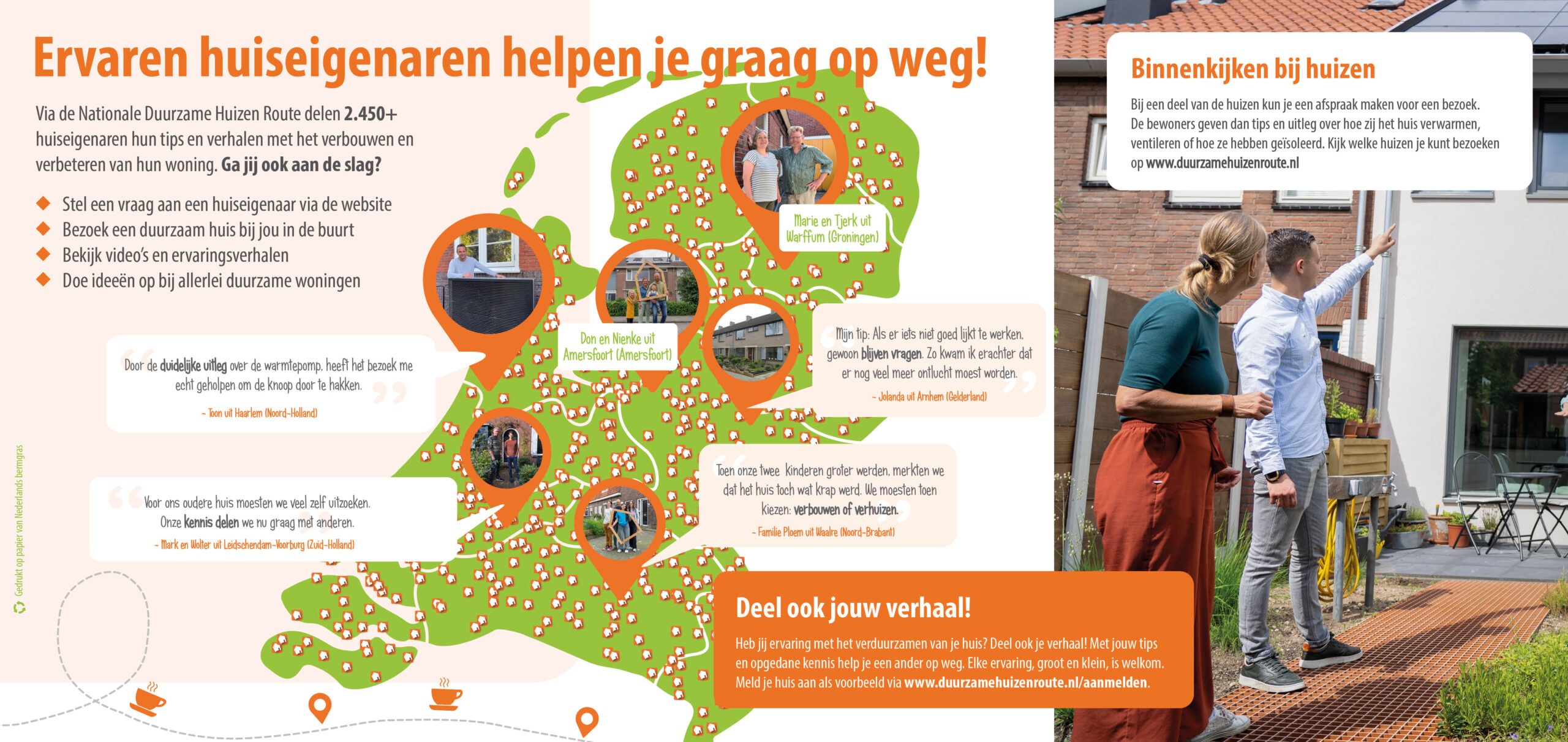 Maak de Nationale Duurzame Huizen Route zichtbaar in jouw omgeving en vraag kosteloos flyers en ansichtkaarten aan. Heb je wensen of ideeën op het gebied van promotiemateriaal? Laat het ons weten via het contactformulier.