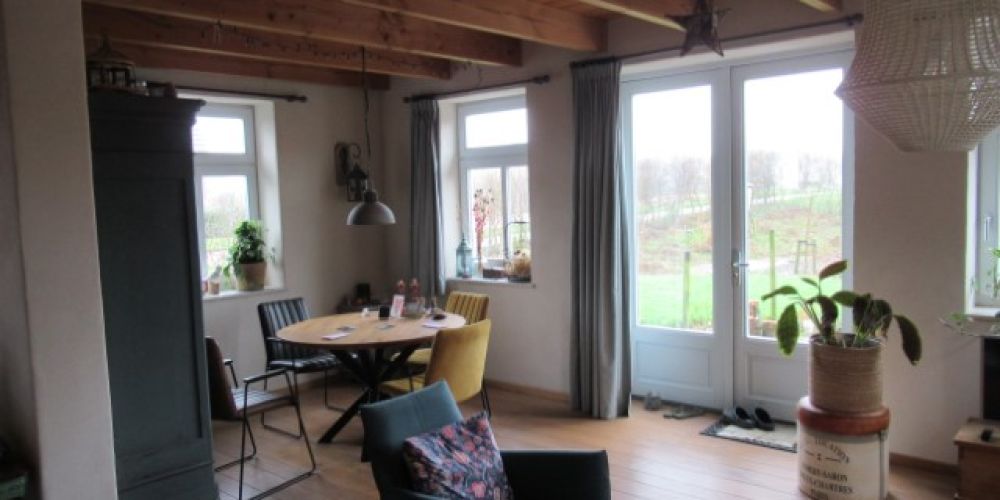 In drie ramen in de woonkamer heb ik boven de kozijnen Duco-ventilatieroosters. Ventilatie is essentieel voor frisse lucht en een goede vochtbalans, maar de koude luchtstroom die door de openstaande roosters ontstaat, vonden we niet prettig. Daarom hebben we besloten mechanische ventilatie aan te leggen met zo kort mogelijke kanalen onder de knieschotten, zodat we die gemakkelijk kunnen reinigen.