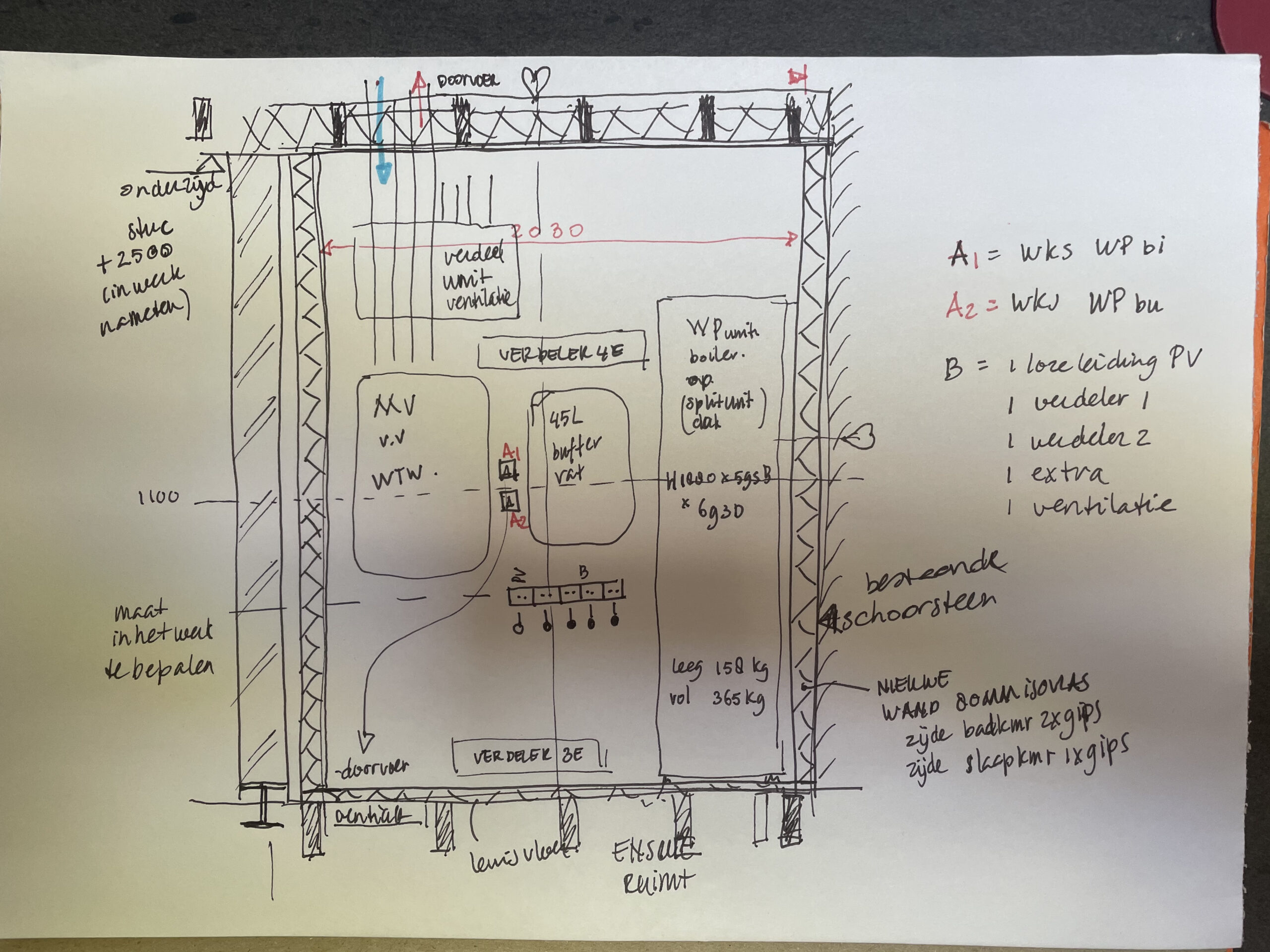Alles goed van te voren uit tekenen eerst schetsmatig en evt. daarna in een tekenprogramma helpt om tussen de verschillende disciplines (timmerman, loodgieter, installateur) te communiceren en een gezamenlijk beeld te vormen van de werkzaamheden en verwachtingen.