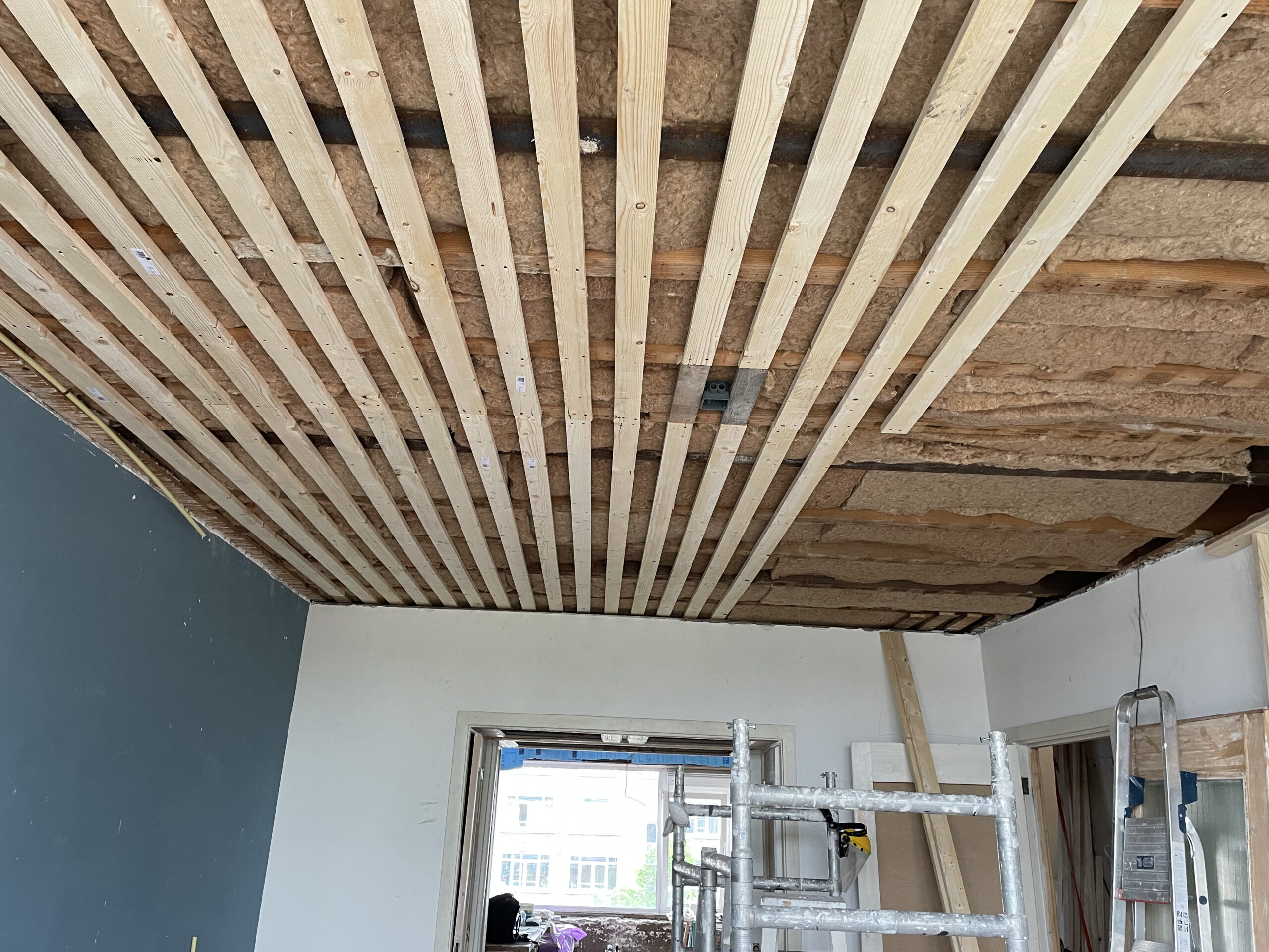 Deze ingreep betekende dat er veel gesloopt en gehakt moest worden. Verder ben ik mij gaan realiseren gedurende het proces dat ons pand door het beschermde stadsgezicht aan de voorzijde niet aangetast kon worden dus alle isolatie het beste in zijn geheel vanuit de binnenzijde aangebracht kon worden. Dit vergt veel aandacht voor koude bruggen, ventilatie en kierdichting.