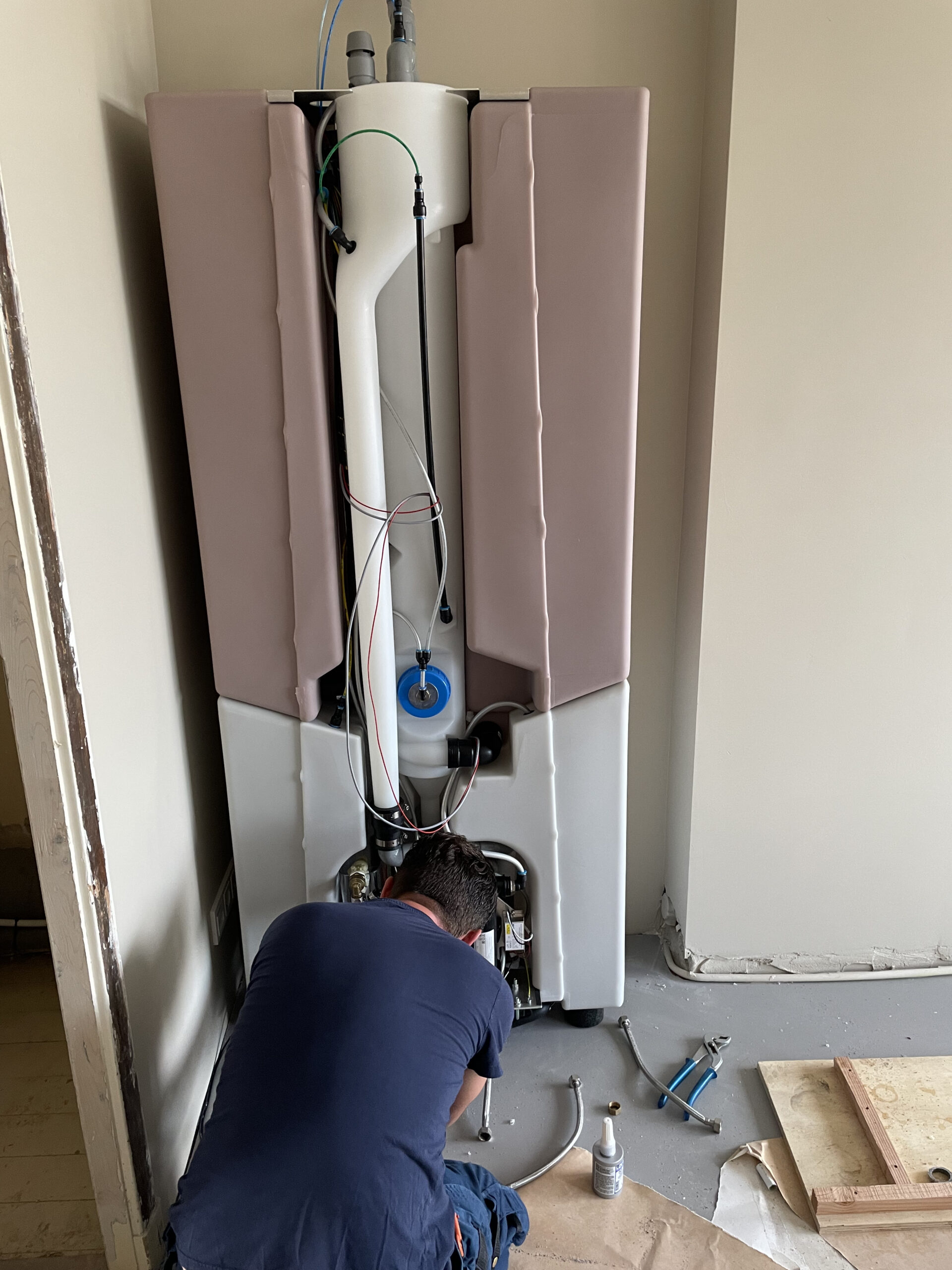 Voor waterbesparing is een Hydraloop geïnstalleerd die het douchewater opvangt en na ontzepen het toilet wordt doorgespoeld en de wasmachine gevuld.