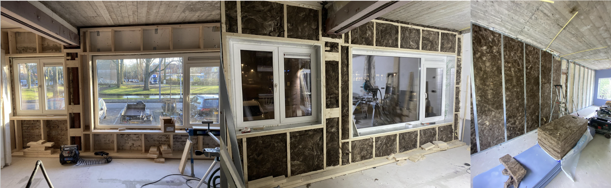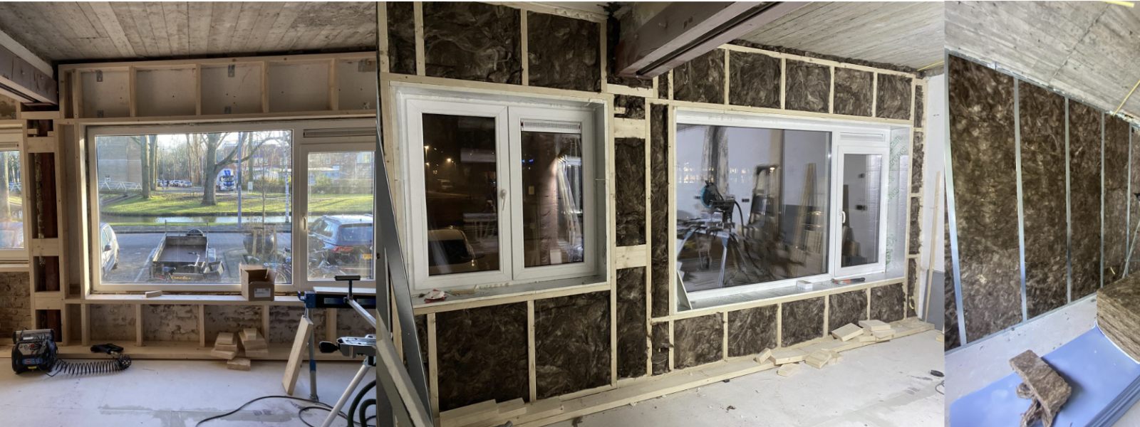 - Buitenmuren – van binnenuit isoleren met voorzetwanden (geen spouwmuur aanwezig)