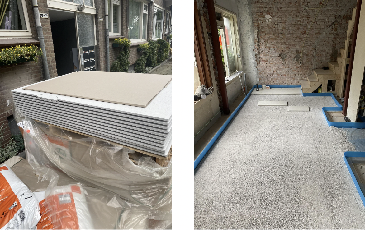 - Vloer -> Isoleren tussen balken en op beton