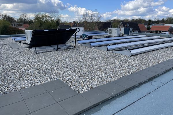 Zonneboiler gekoppeld aan warmtepomp om deze te ontlasten.