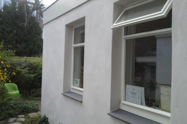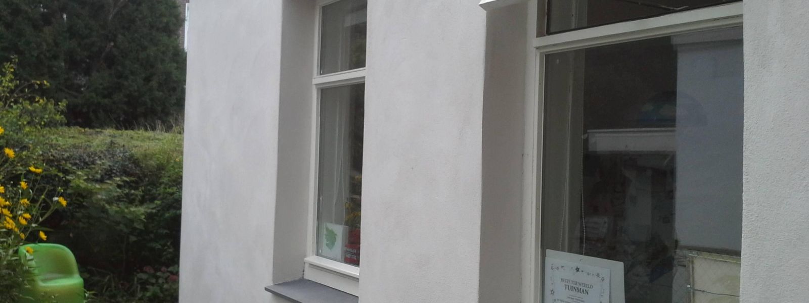 Voorgevel ISOVLAS (binnen), achtergevel (tuin) buitengevelisolatie XPS