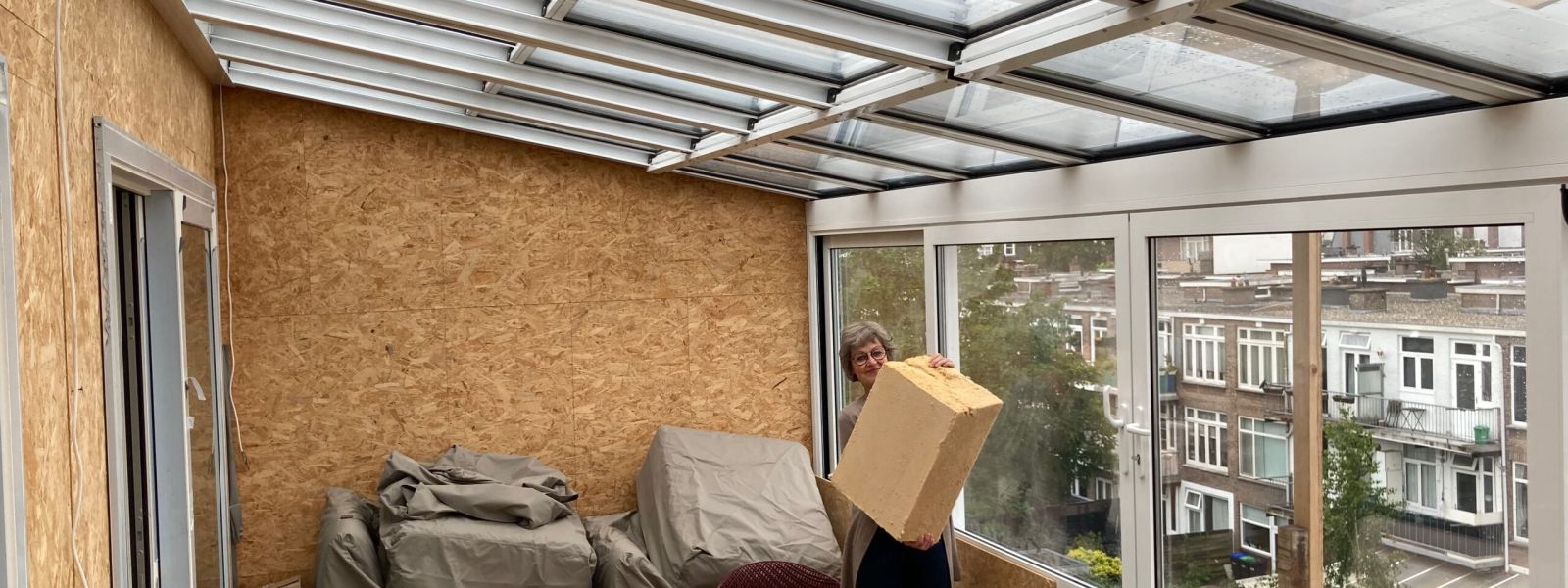 Heel leuk is de bovenverdieping, waar ik meerdere principes gecombineerd heb. Een echte win/win/win-oplossing – daar hou ik van! De serre verwarmt de lucht voor, de airco heeft een COP-waarde én is functioneel te gebruiken. In combinatie met de goede isolatie (muren RC 8,5 en dak RC 10) ben ik heel benieuwd hoeveel energie hier nog nodig zal zijn.
