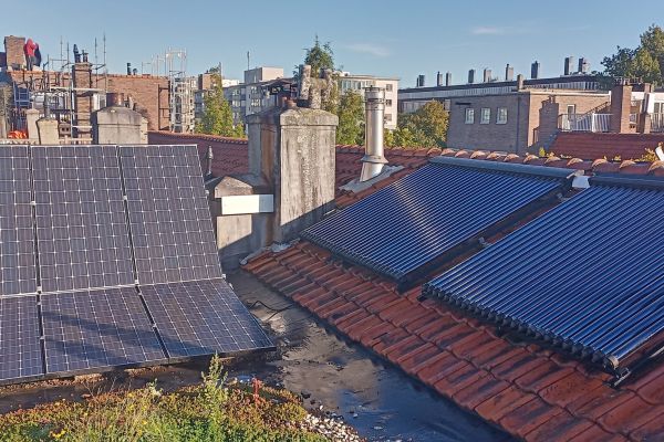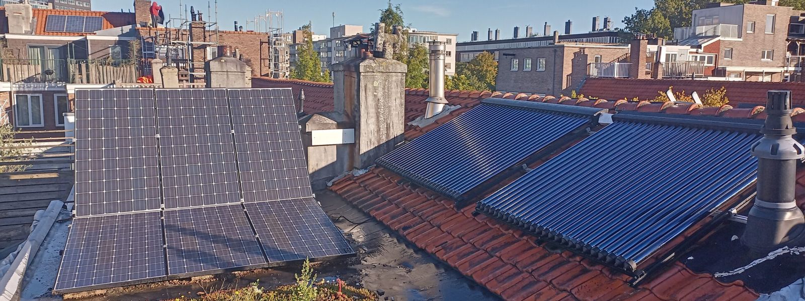 Verwarming middels Heatpipes-CV-buffer van 350 liter (dus geen tapwaterboiler), met gasnaverwarming en wandverwarming in leemstuc muren. Immers de muren moesten toch aangepakt ivm nieuwe elektra leidingen en vloerverwarming beperkt de soorten vloerbedekking. Beide douches hebben WTW. Op het schuindak liggen de heatpipes (oost-west) en op platdak PV op het zuiden. Wasmachine en vaatwasser hebben hotfill. Ten slotte heb ik ook een (schoon brandende Jotul) houtkachel. I know, da’s omstreden in verband met fijnstof. Maar het is in ieder geval niet fossiele CO2 en het geeft de mogelijkheid om terug te vallen op andere verwarming als er geen stroom is. Iets dat ik met de dag meer relevant vind worden.