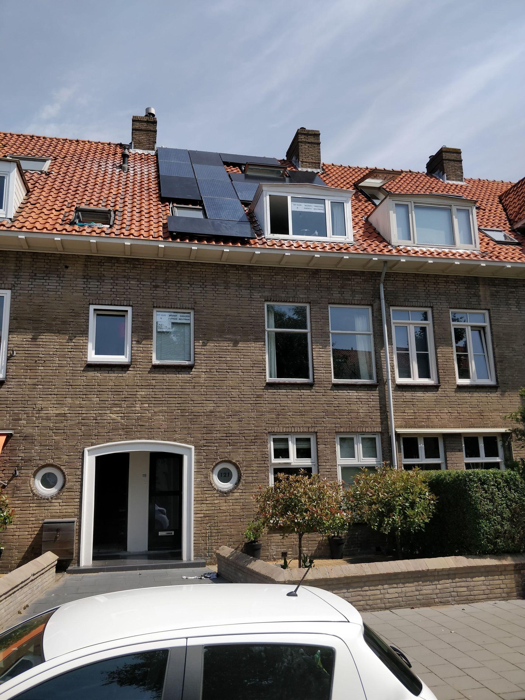 Een bovenwoning van 1952 in de Vogelenbuurt in Haarlem Noord. Waarschijnlijk tot nu toe het enigste aardasloze en Nul-op-de-Meter (energieneutrale) huis in deze wijk. De verwarming en tapwater worden verwarmd door een Nibe S1255 6 kW (op 8kW) brine-water warmtepomp met als bron 14 “UseAllEnergy” PVT panelen (combinatie van een zonnepaneel en een warmtewisselaar) op het zuiddak en nog 10 “gewone” zonnepanelen op het noorddak voor de opwek van alle benodigde elektriciteit, voor zowel het huishouden als de warmtepomp. Het jaarsaldo is nul kWh aan elektraverbruik. (en de rekening is dus ook nul euro! 😉 )Dit huis is een situatie waarvan sommige mensen beweren dat het niet verwarmd kan worden door een warmtepomp, daarom was het leuk om dit toch te doen! 🙂 Het huis is redelijk oud (1952), is matig geisoleerd (meest HR++ glas en nog wat oud dubbel en enkel glas, spouwmuurisolatie en dakisolatie), had een 1 fase elektra-aansluiting en heeft overwegend ouderwetse enkelblads radiatoren! Aangezien de warmtepomp als het nodig is water van 50 graden kan maken, wordt dit huis toch prima warm. Ik heb 1 stookseizoen getest door mijn CV-ketel op een lage verwarmingstemperatuur van 45 graden te zetten en dat ging prima en gaf het vertrouwen dat het met de warmtepomp ook goed zou gaan lukken. Ideaal gezien zou er nog wat meer aan de kierdichting gedaan kunnen worden en een ventilatiesysteem met warmteterugwinning staat ook nog op de verlanglijst. Er wordt gekookt op een inductiefornuis, wat wel een beetje een uitdaging is met een 1 fase elektra-aansluiting, maar tot nu toe gaat het prima.