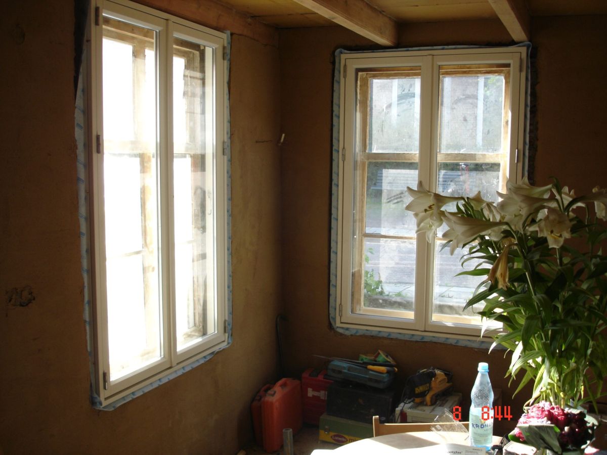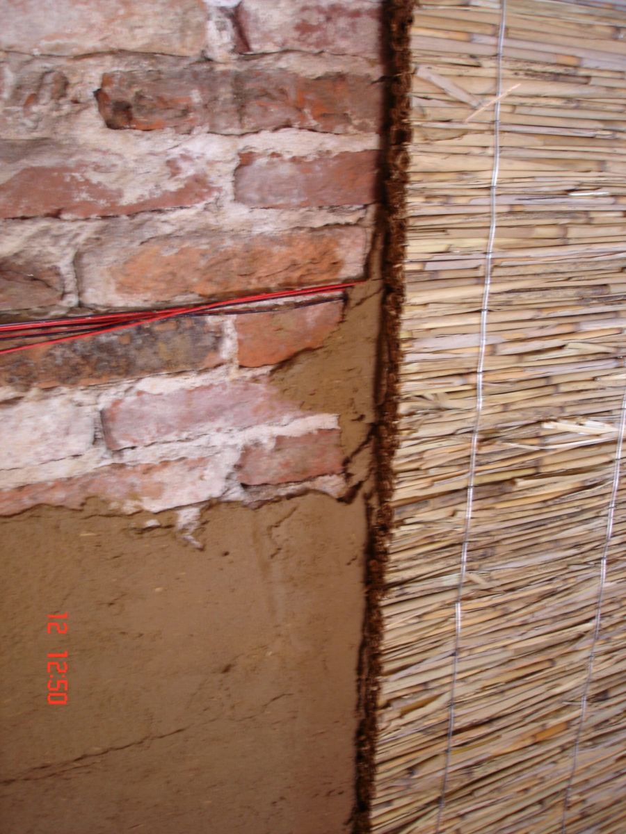 Gevelisolatie (met 2cm riet) is bewust beperkt gehouden om ruimte binnen te behouden, en een dampopen systeem te creëren dat via het wandtemperatiesysteem de binnenkant van de buitengevel boven het dauwpunt houdt. Dit werkt wonderbaarlijk goed. Energiegebruik van deze woning is zeer laag, ondanks deze minimale isolatie van de oude halfsteens-gevel.