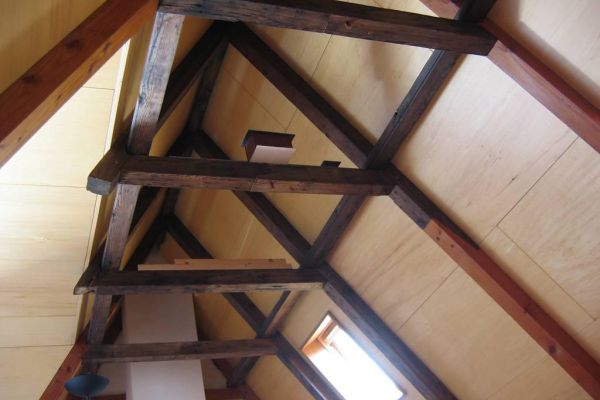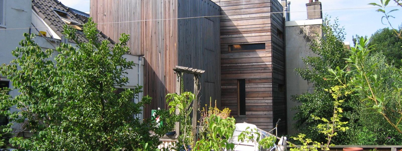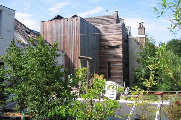 Vanwege huiszwam in de bouwval is vanaf het begin gekozen voor een dampopen oplossing. Deze is o.a. gevonden door toepassing van schapenwol als hoofdisolatiemateriaal, aangevuld met kurk onder de tegelvloer in de keuken. Isolatie ging voor installaties. De ventilatie is natuurlijke toevoer en afvoer, wat prima werkt. Nachtkoeling, spuien en schoorsteenwerking door het huis heen doet de rest. Het is er kurkdroog. De schapenwol buffert vocht en geeft het ook weer af.