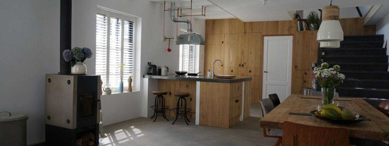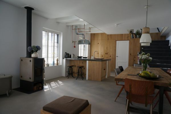 Voormalige openhaarden winkel geheel verbouwd tot hoekwoning met yogastudio in de Leidsebuurt.
