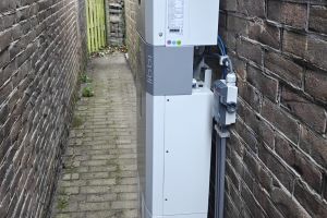 In deze woning is een thuisaccu met een capaciteit van 10 kWh geplaatst. Vanwege ruimtegebrek bevindt de accu zich buiten, terwijl de aansturing en regeltechniek binnenshuis zijn geïnstalleerd. Deze opstelling combineert praktische plaatsing met goede toegankelijkheid en bescherming tegen weersinvloeden.