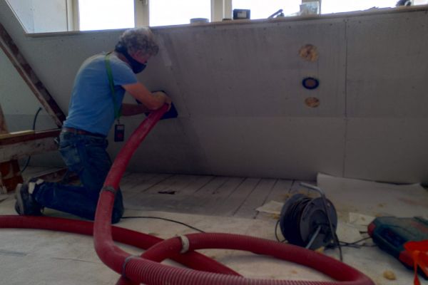 De kruipruimte is volgestort met isolatiebeton. Variërent van 500mm tot 700mm dikte.