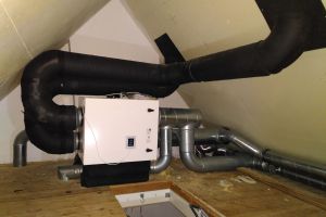 Zie ook vloerverwarming! We hebben in het hele huis balansventilatie met wtw aangebracht. We hebben de bestaande schoorstenen van de vroegere houtkachels gebruikt om de ventilatie naar alle kamer te brengen.