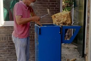 De holte achter de platen van 27cm hebben we volgeblazen met houtwol.