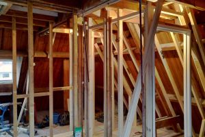 foto 1. 5×5 laten uit het plafond hergebruikt in binnenwanden op zolder.