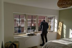Al het glas is vervangen voor HR++ glas met warmtewerende folie (u waarde 1,2, argon gevuld). De draaiende delen hebben we met kozijn en al vervangen voor een betere kierdichting. Het glas in lood is in dubbelglas geplaatst.
