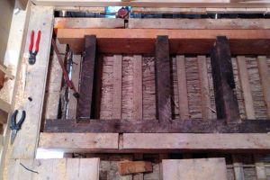 foto 4-5. Oude vloerbalken beganegrondvloer gebruikt als versteviging zoldervloer t.p.v. buffervat.
