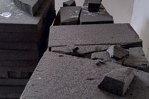 Voor de badkamer hebben we 8cm foamglass blokken gebruik, verlijmd met natuurkalk. (zie foto met zwarte blokken)