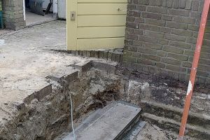 foto 3. Oude tegels en betonnen schutting gebruikt als fundering nieuwe aanbouw.