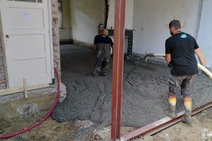 De kruipruimte is volgestort met isolatiebeton. Variërent van 500mm tot 700mm dikte.